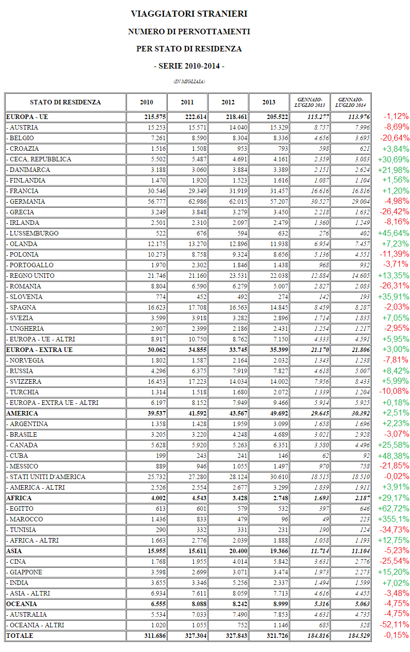 Senza dimenticare che i dati dell'UNTWO danno l'Europa in aumento dal 5 al 6% per quanto riguarda le presenze straniere. Come a dire che mentre noi facciamo una patta, beh; gli altri ci vanno alla grande.